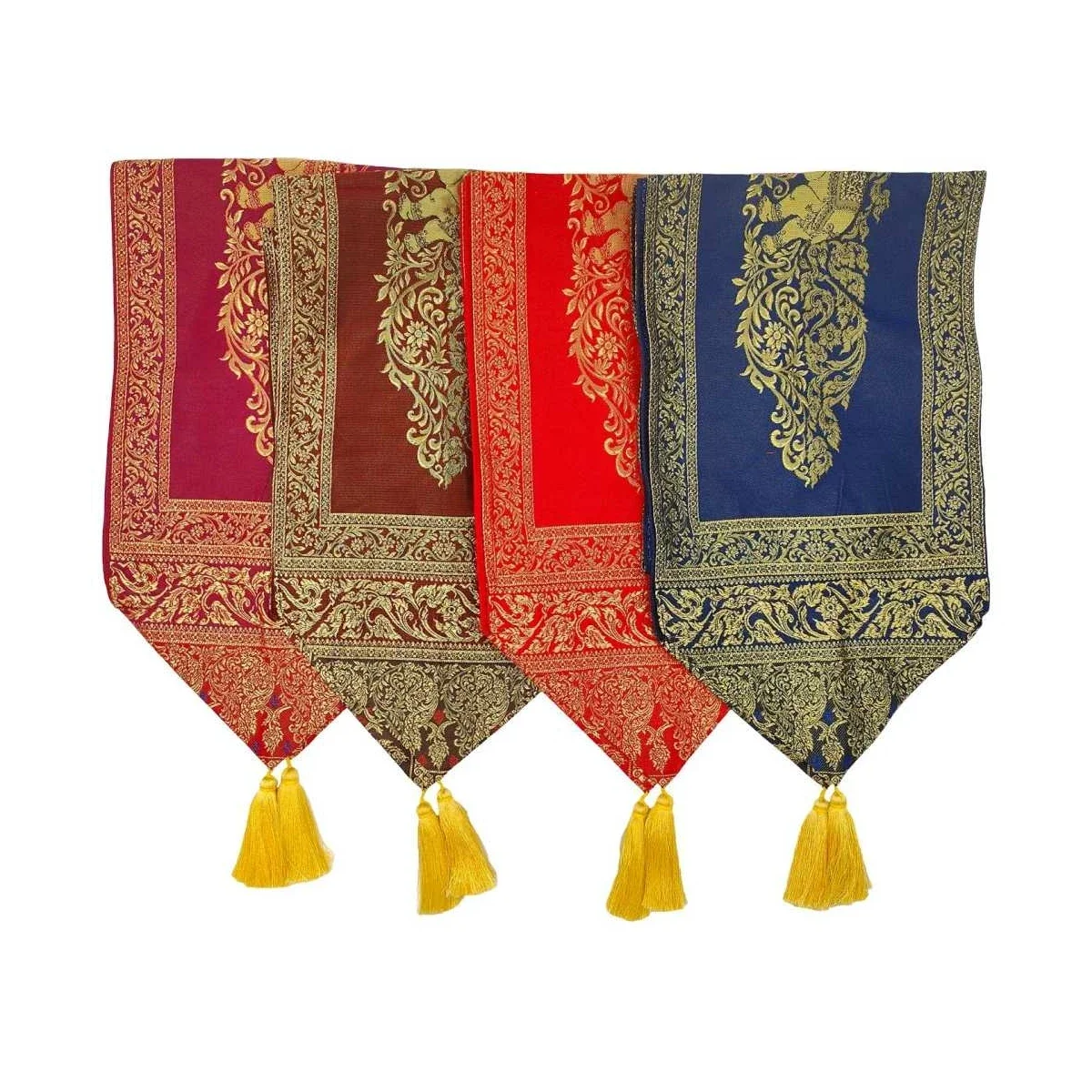 Kwaliteitsvolle stof met stijlvolle Thaise ornamenten. De gekleurde stof met gouden accenten zorgen voor een authentieke thaise sfeer.